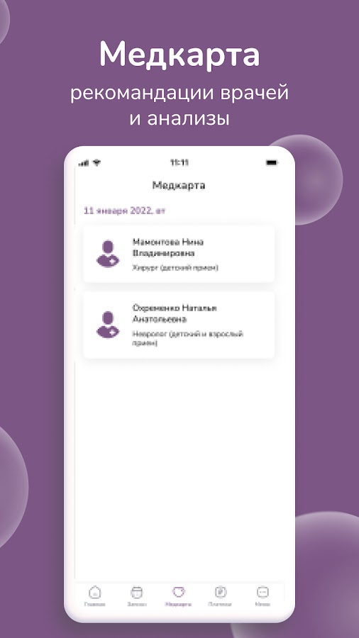 Быстрый доступ к истории приемов, результатам анализов и назначениям специалистов — медкарта теперь всегда с собой!
