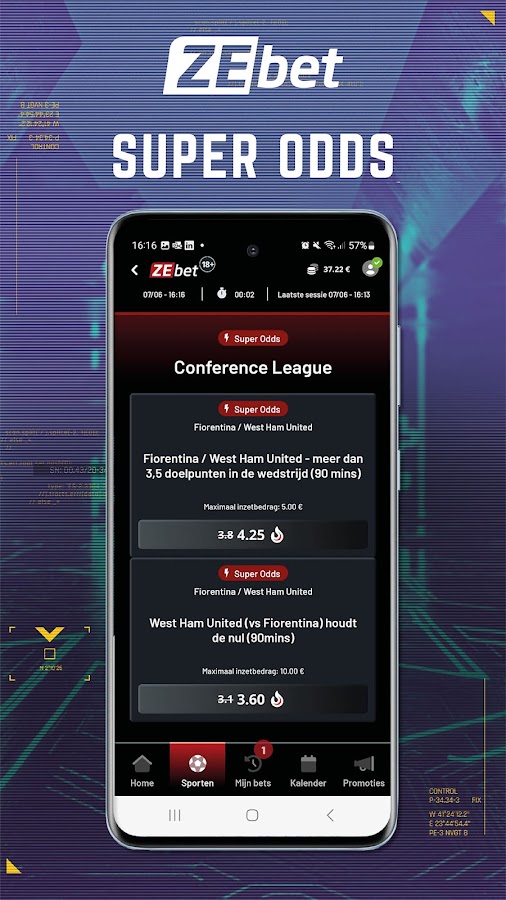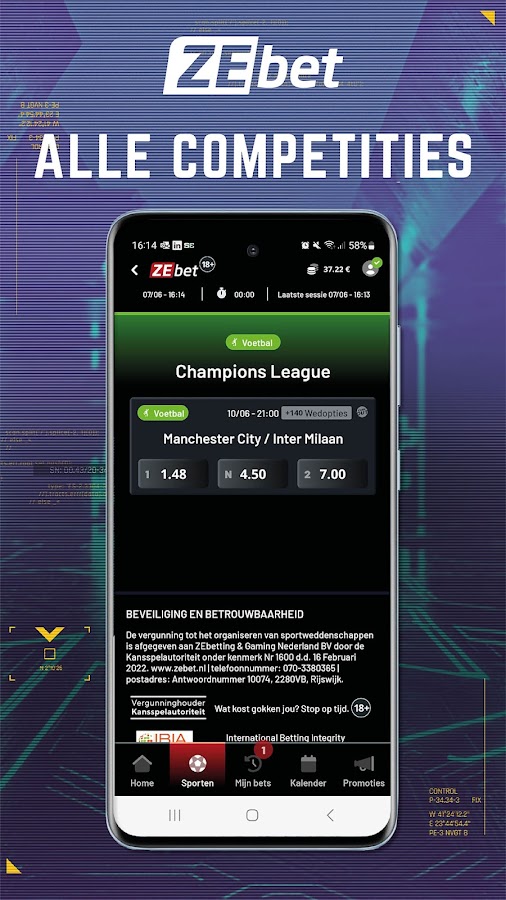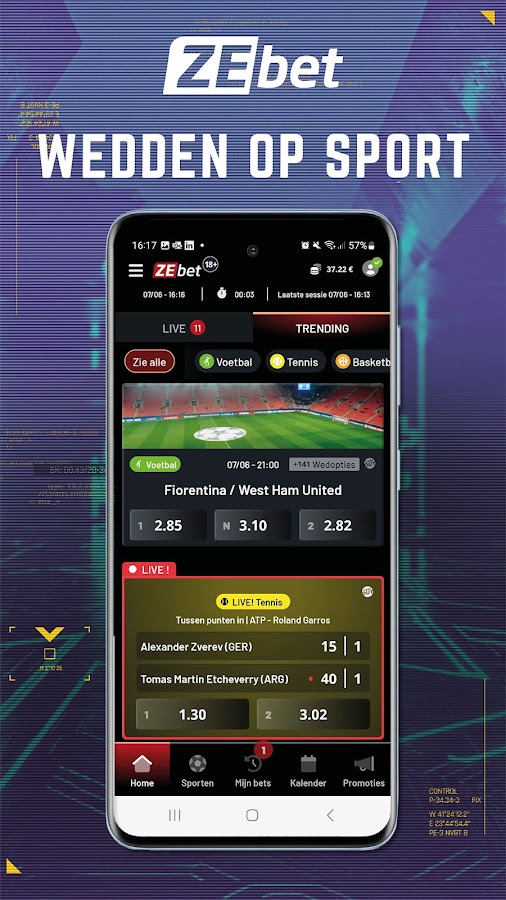 Приложение ZEbet полностью ориентировано на ставки на спорт. Делайте ставки на тысячи футбольных матчей, таких как Эредивизи, Премьер-лига, Лига чемпионов, чемпионаты мира и Европы и так далее. Но также делайте ставки на многие другие виды спорта, такие как теннис, Формула-1, дартс, НБА, НФЛ, НХЛ, MLB, велоспорт и т. д.