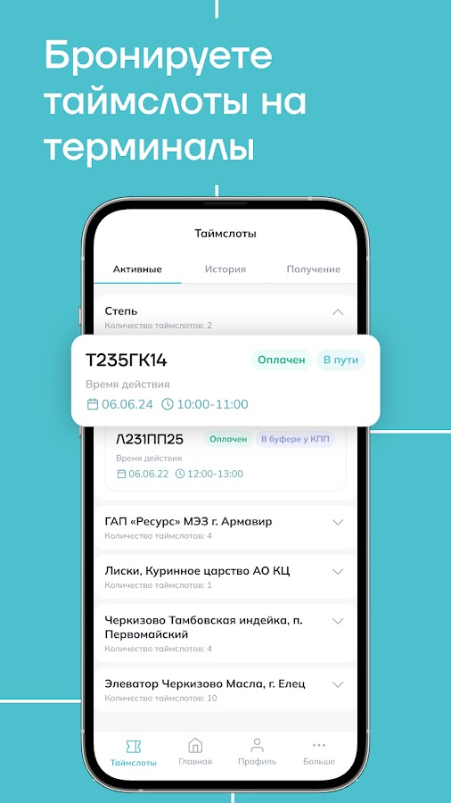 — Экономия времени: Все важные функции, от получения таймслотов до их оплаты и подписания документов, собраны в одном месте, что позволяет сэкономить время и усилия на каждой стадии перевозок.