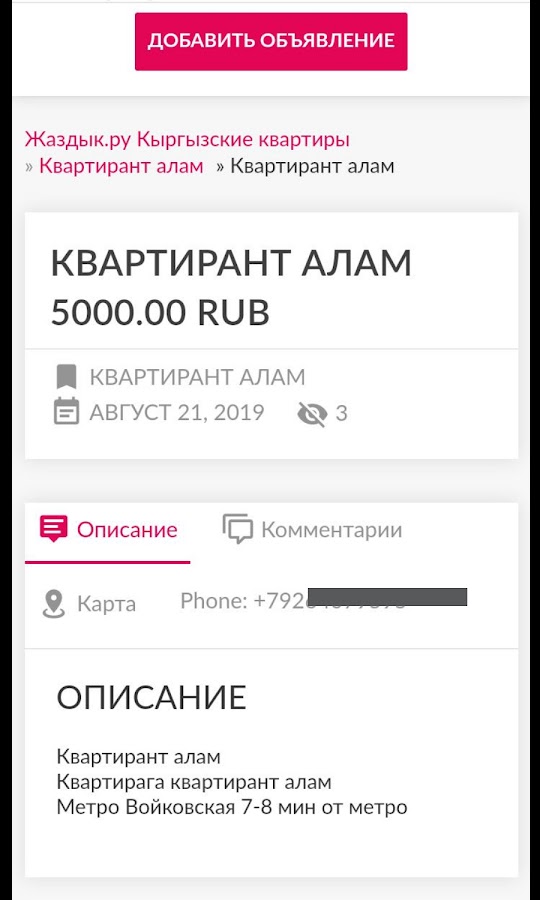Жаздык ру сайтында Москвага келген кыргыздар учун квартира, комната, койко-места, гостиница, офис тапса болот. Жаздык ру издегенге, тапканга эн жакшы жарнамалык аянтча. Бул учун сага Жадык ру объявления жардам берет. Жаздык ру эмнени издесен таап берет.