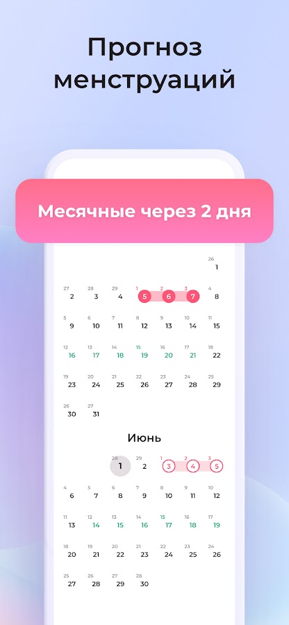 В приложении вы легко сможете отследить даты месячных, их регулярность и продолжительность. Приложение подскажет предполагаемую дату овуляции и фертильные дни для планирования беременности.