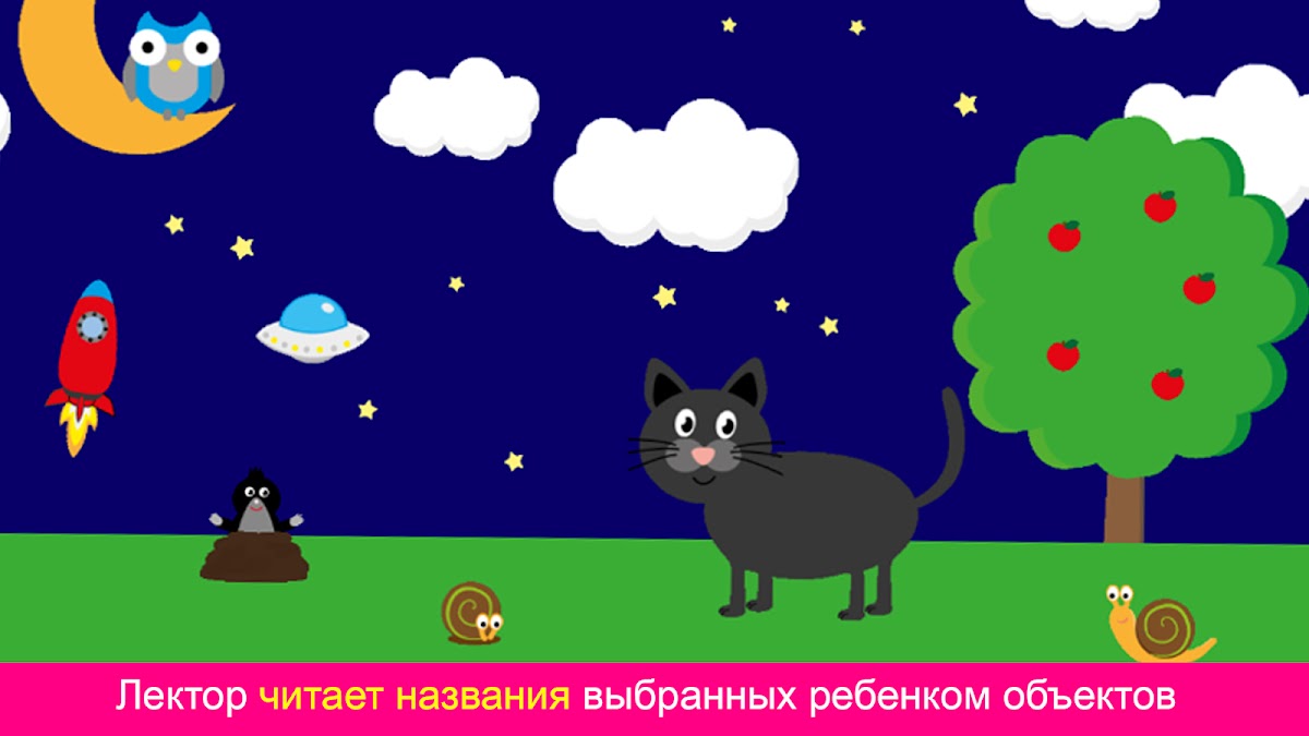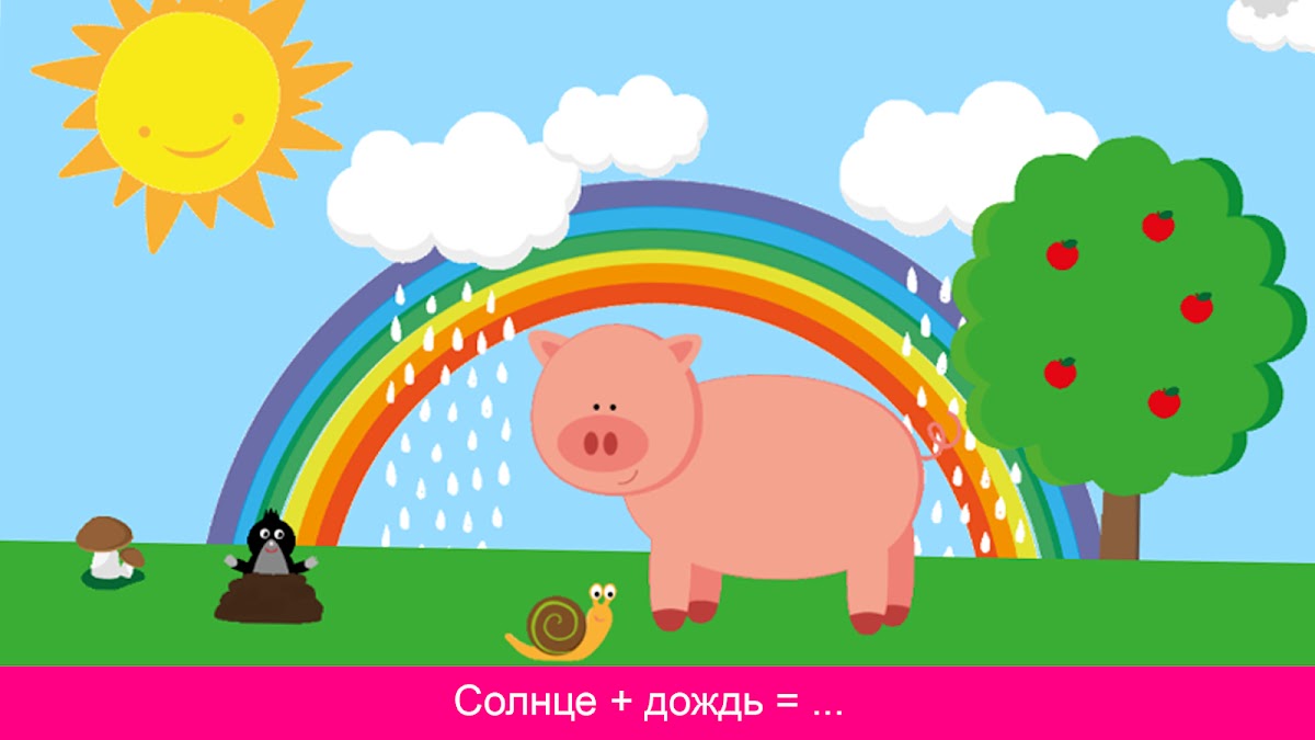 ★ Солнце светит в небе. Когда вы скользите пальцем, появляется луна. Когда вы касаетесь облака, идет дождь, на небе появляются радуга, звезды или пузырьки. Каждое действие имеет свой собственный звук.