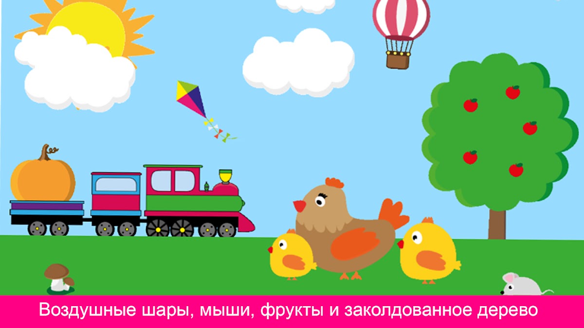 Игра отлично подходит для детей от 1 года. Множество красочных картинок и веселых звуков.