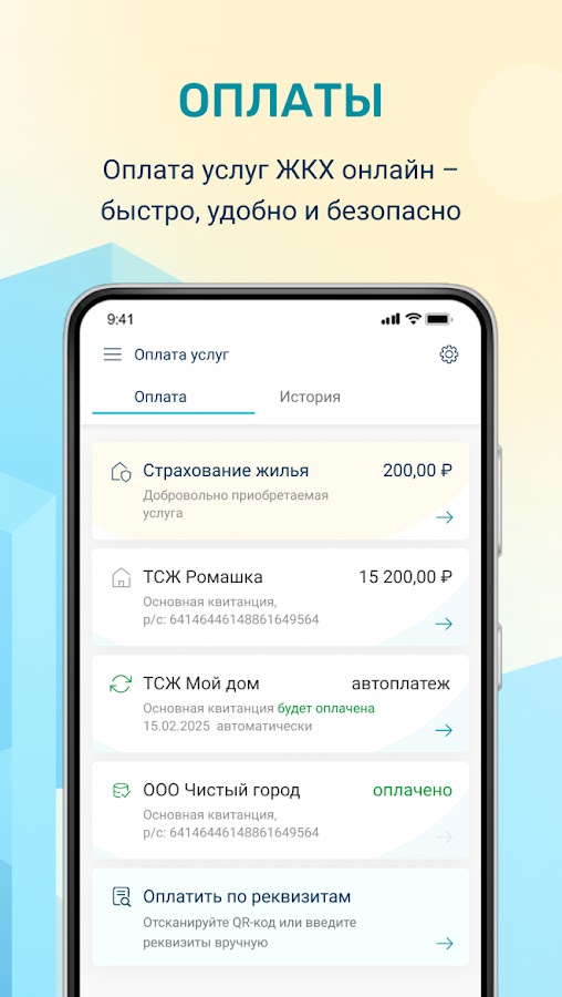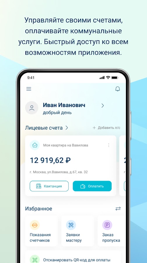По умолчанию предоставляется доступ к базовой версии личного кабинета ЖКХ. В ней можно оплатить коммунальные услуги по QR-коду или по реквизитам получателя платежа, которые вводятся вручную. Это доступно любому жильцу, скачавшему приложение.