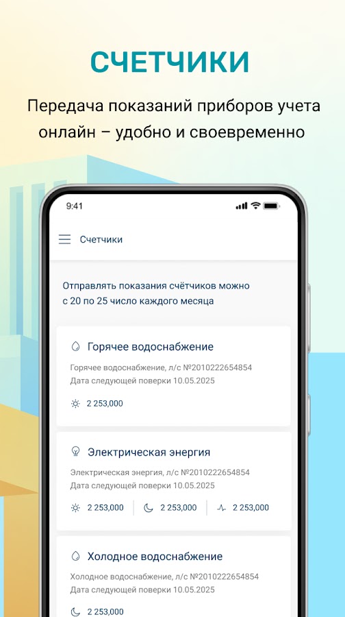 Поддерживается работа с несколькими лицевыми счетами: вы будете видеть данные по каждому счету в отдельности в приложении для управления ЖКХ!