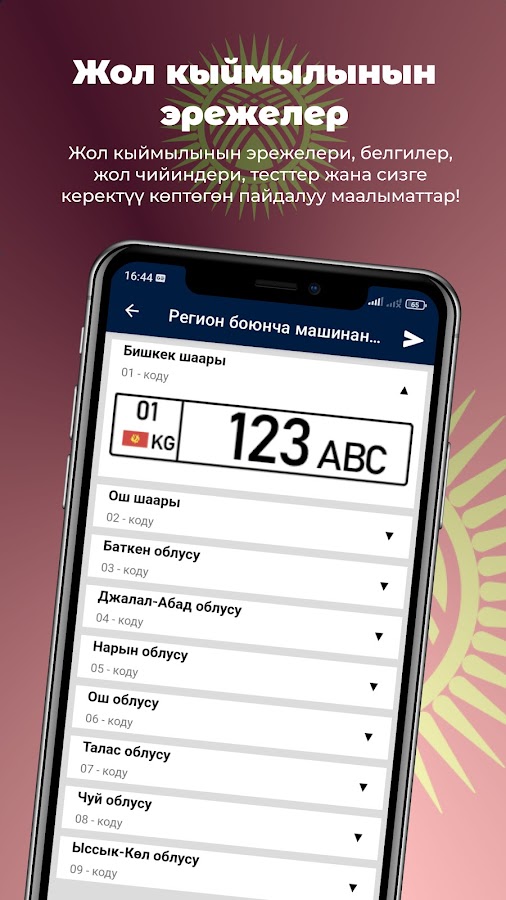 — Аймактар боюнча машинанын номерин билип алыңыз.