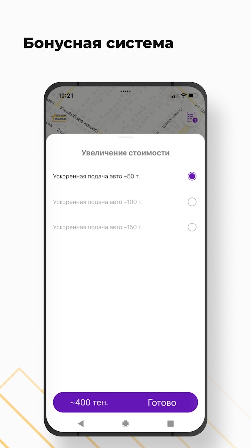 Зарабатывайте бонусы за каждую совершенную поездку и используйте их для оплаты будущих заказов. Поделитесь личным реферальным кодом в социальных сетях и получайте бонусы за каждого друга, который использовал ваш код.