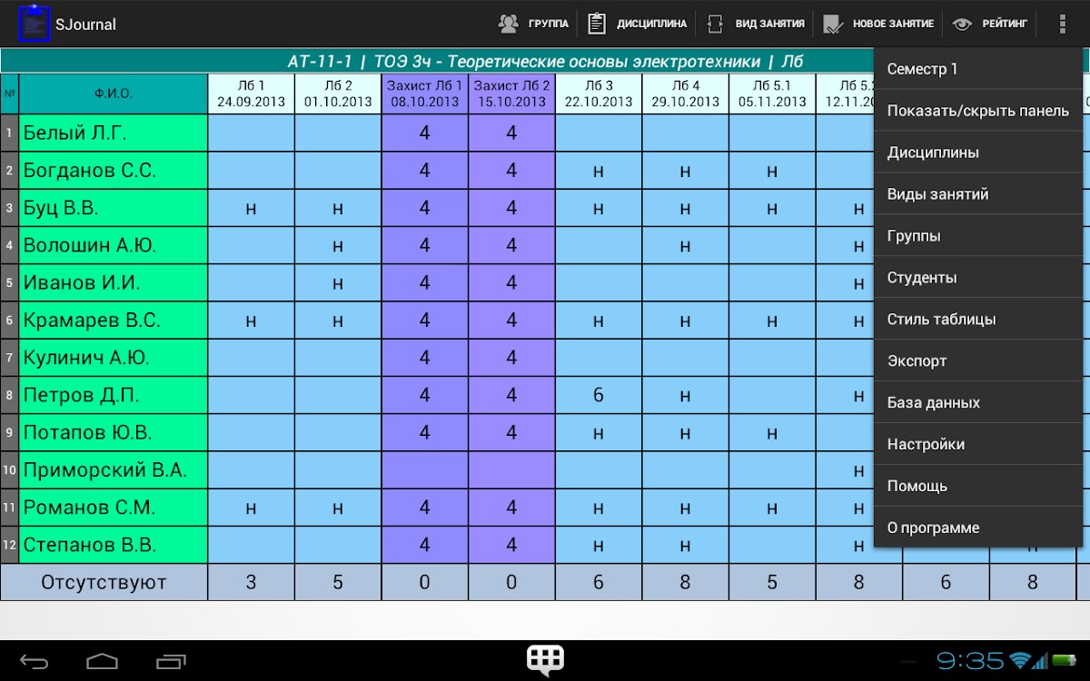 Программа предназначена для преподавателей университетов. Предоставляет возможность вести журналы посещаемости и успеваемости учащихся.