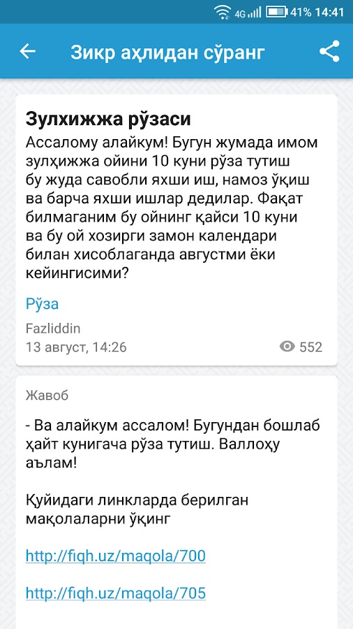 Зикр аҳлидан сўранг дастуримиз орқали savollar.islom.uz сайтида берилган савол-жавоблардан фойдаланиш, сайтга савол йўллаш мумкин