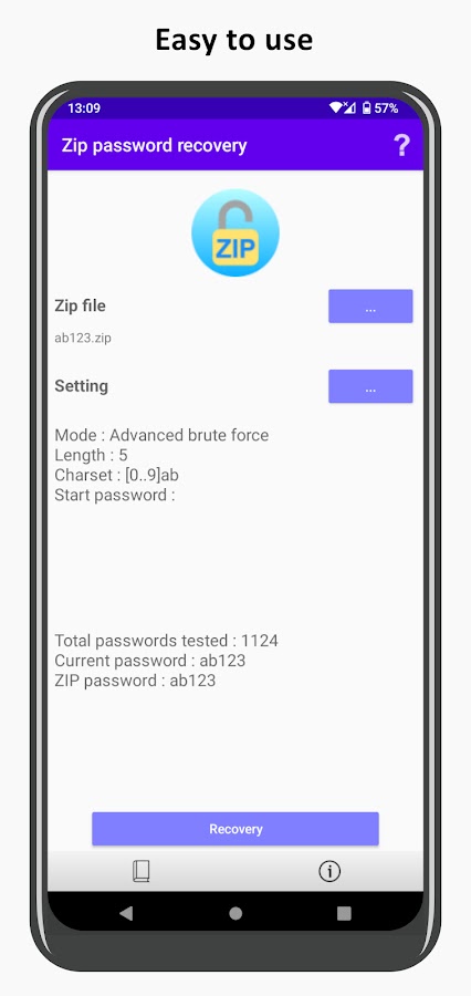 Это приложение помогает пользователям восстанавливать пароли к их zip-файлам, защищенным паролем.