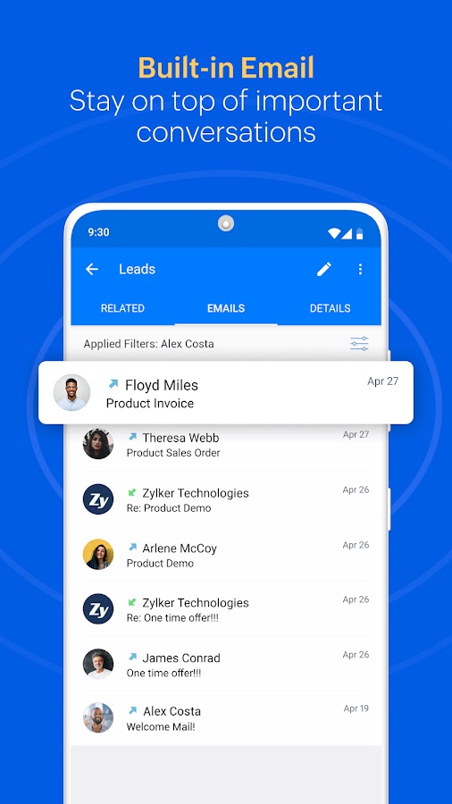 Контролируйте свои продажи на ходу с помощью мобильного приложения Zoho CRM.