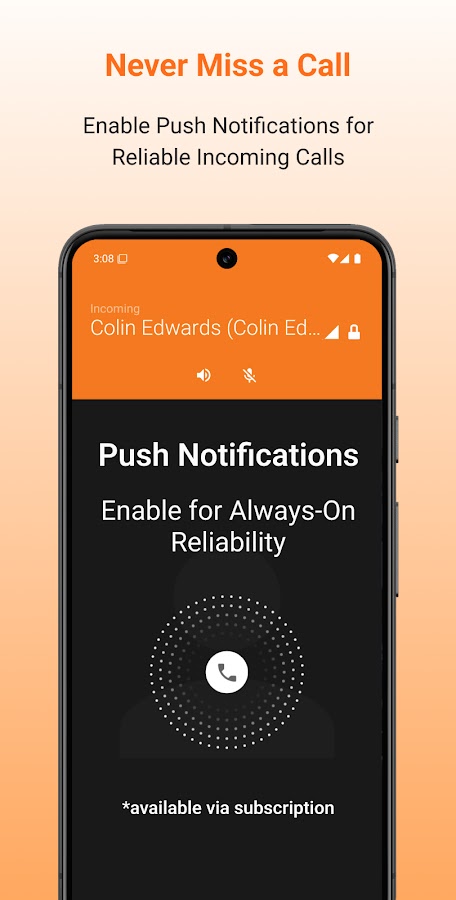 Подпишитесь на сервис PUSH Zoiper из приложения. Эта дополнительная платная функция гарантирует, что вы будете принимать звонки, даже когда приложение закрыто — идеально подходит для профессионалов и часто путешествующих.