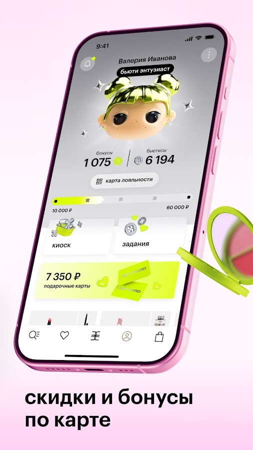 Уникальная фишка Золотого яблока — бьюти-тамагочи. Виртуальный эльф требует ухода: ему нужно делать маски, переодевать и обустраивать его комнату. За заботу вы получаете бьюти-коины, которые можно обменивать на скидки и промокоды. Мини-игры и ежедневные задания добавляют элемент геймификации, превращая шопинг в увлекательное приключение.