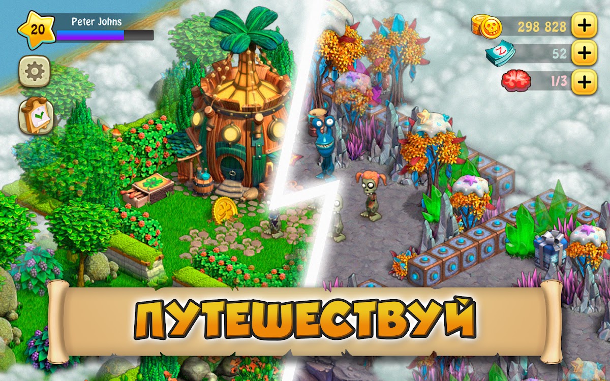 🗺 Путешествуйте по огромному миру зомби! Отправьтесь на Остров Игрушек 🧸, побродите по шумному Городу Людей 👫, слетайте на Астероид ✨, съездите на экскурсию по Острову Сафари 🦁 – столько локаций в реальной вселенной не посетишь!