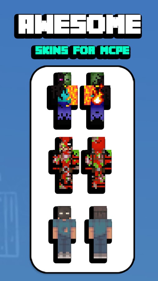 Это приложение представляет собой приложение-каталог скинов зомби для вас и ваших друзей. В этом приложении так много скинов зомби, как майнкрафт зомби-свиночеловек или зомби-апокалипсис. Конечно, это приложение предоставляет скины бесплатно и постоянно обновляется.