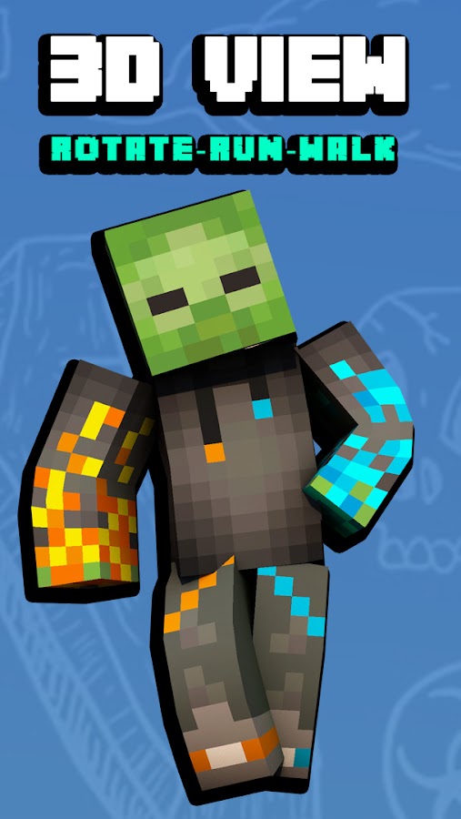 Zombie Skins For Minecraft PE очень прост в использовании, просто нажмите кнопку загрузки и импортируйте в свою игру, чтобы играть. Теперь с предварительным просмотром 3D с поворотом, бегом, бездействием и ходьбой. Важно, для скачивания скинов необходимо подключение к интернету.