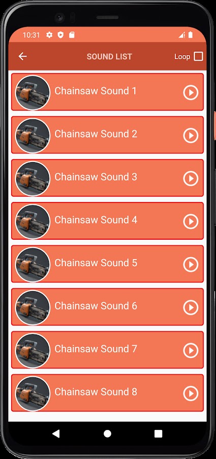 Это приложение, содержащее лучшую коллекцию звуков бензопилы для устройств Android. Звуки были выбраны очень тщательно, чтобы сделать их удобными и забавными. Мы надеемся, что вам понравится пользоваться приложением и слушать звуки бензопилы.