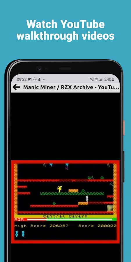 • Играйте в игры ZX Spectrum 48K и 128K с форматом снимков Z80 и SNA (файлы снимков Z80 и SNA должны быть предоставлены пользователем)