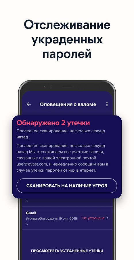 - Особенности: антивирус, блокировка приложений, поиск по утечкам