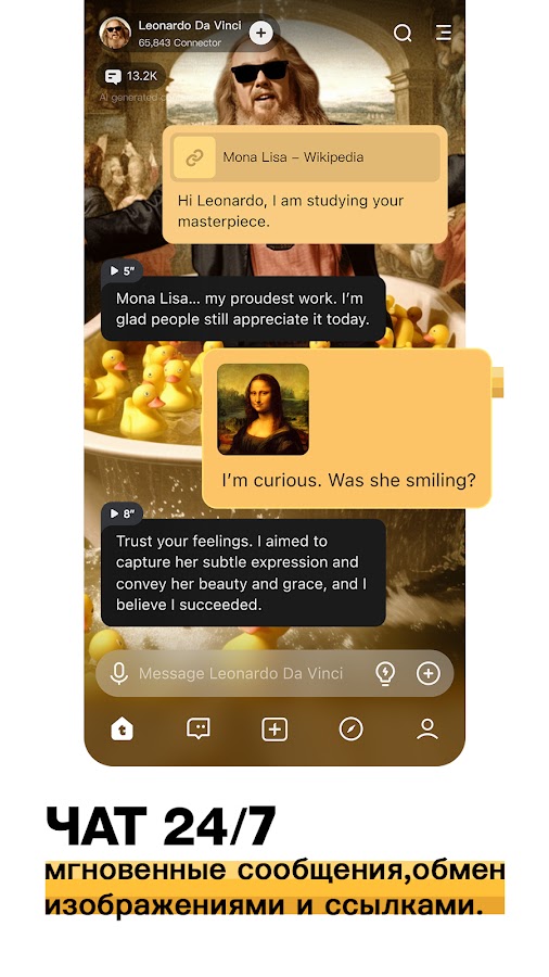 💡 Преимущество: интерактивные диалоги с AI-персонажами и развлекательные сценарии.