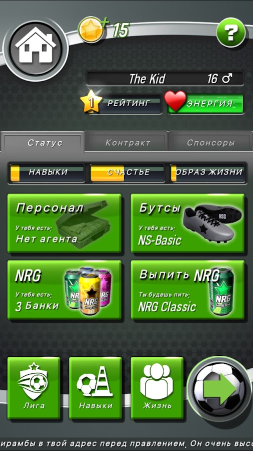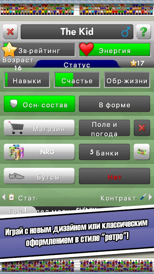 - Прокачка навыков, карьеры и отношений с клубами.