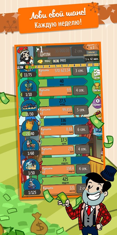 AdVenture Capitalist — это игра, где ты начинаешь с малого бизнеса и стремишься стать мировым капиталистом. Ты инвестируешь в различные отрасли, нанимаешь менеджеров и получаешь прибыль. Игра предлагает увлекательный геймплей с элементами стратегии.