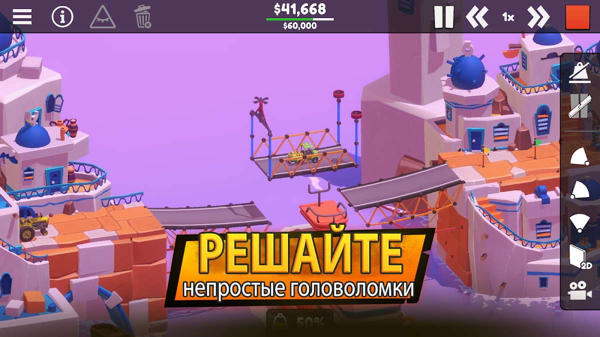 | Poly Bridge 3 | Инженерная головоломка | Точная физика конструкций | Строй мосты, проводи испытания |