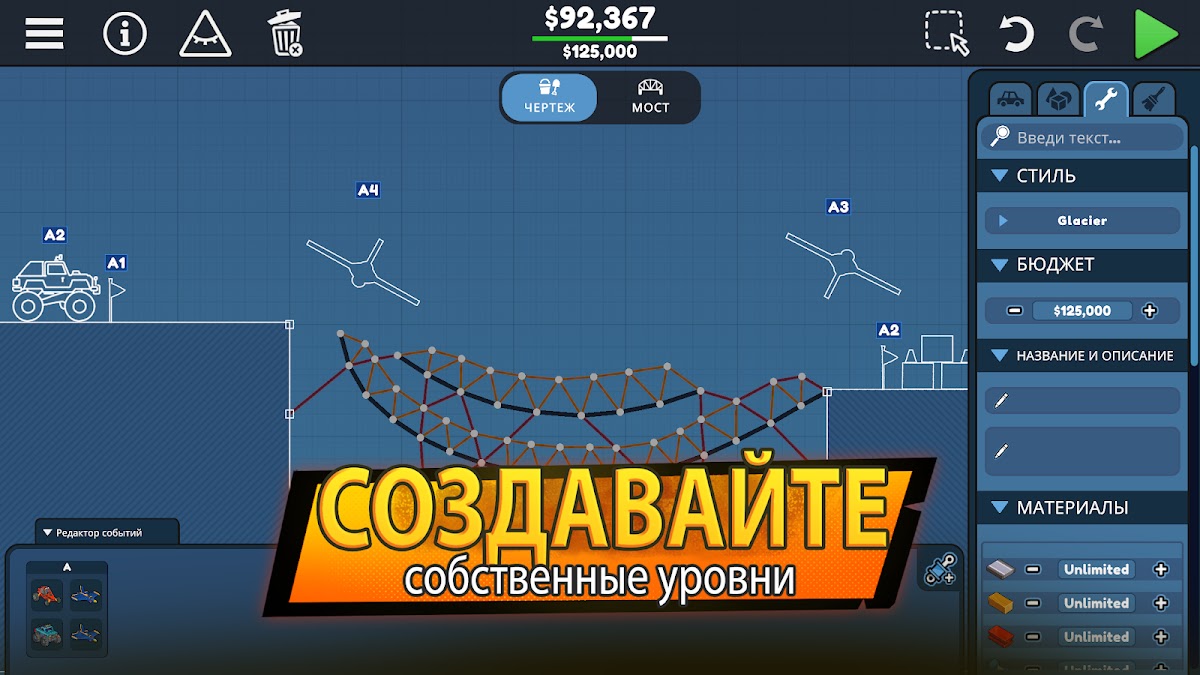 - Создание мостов с реалистичной физикой;