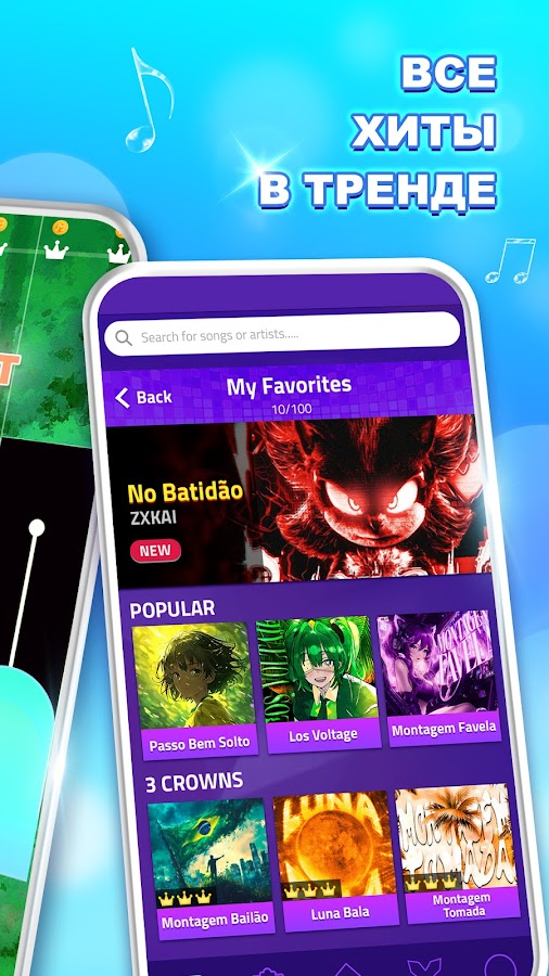 - Особенности: популярные треки, ловкость пальцев, режим PvP