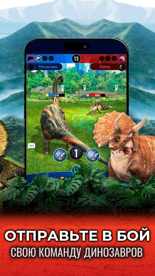 - Тактические битвы с динозаврами