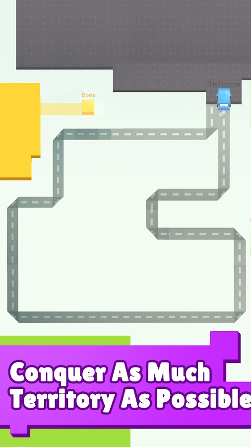 Управляй цветным квадратом и закрашивай поле. Чем больше захватишь — тем лучше. Но будь осторожен: другие игроки могут “перерезать” твою линию!