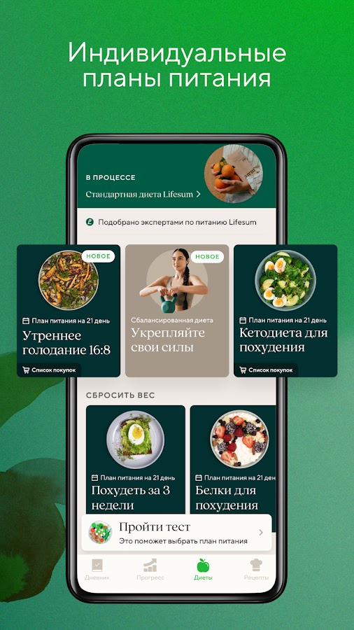 - Персонализированные планы питания.