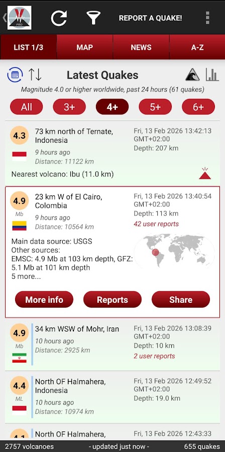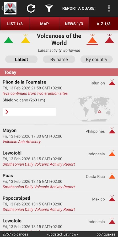 - Особенности: Информация о вулканической активности и землетрясениях по всему миру, интерактивная карта.