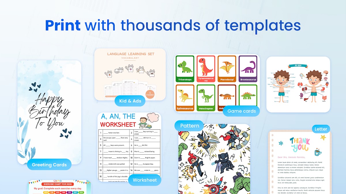 Печать документов, фото и веб-страниц, поддержка Wi-Fi, Bluetooth и USB, удаленная печать на любом принтере.
