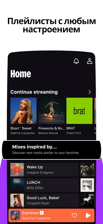 Фишка: Flow — умный плейлист с персональными рекомендациями.