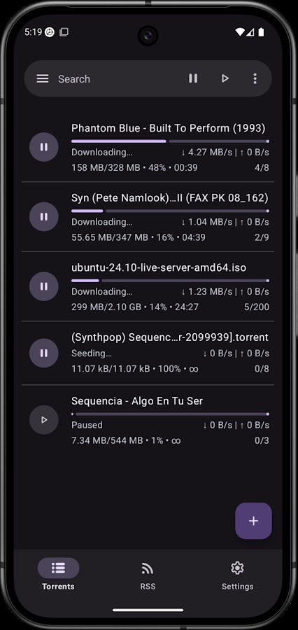 - Встроенный поиск. Ищите торренты прямо в приложении.