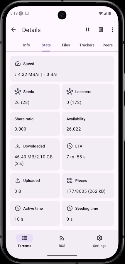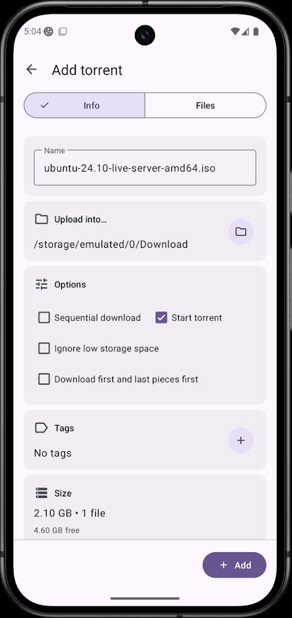 LibreTorrent идеально подходит для тех, кто ценит приватность и предпочитает приложения без рекламы.