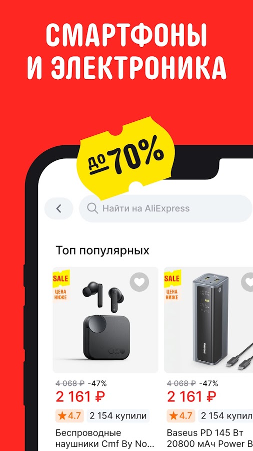Сейчас у AliExpress улучшилась логистика, а брендов стало больше — особенно в разделах электроники и аксессуаров. Приложение активно пушит акции, купоны и специальные предложения.