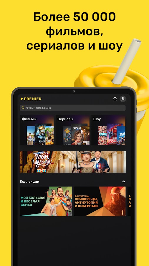 - Большой выбор контента — российские и зарубежные фильмы и сериалы.