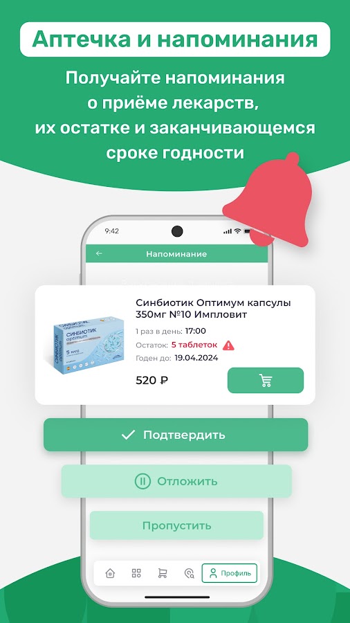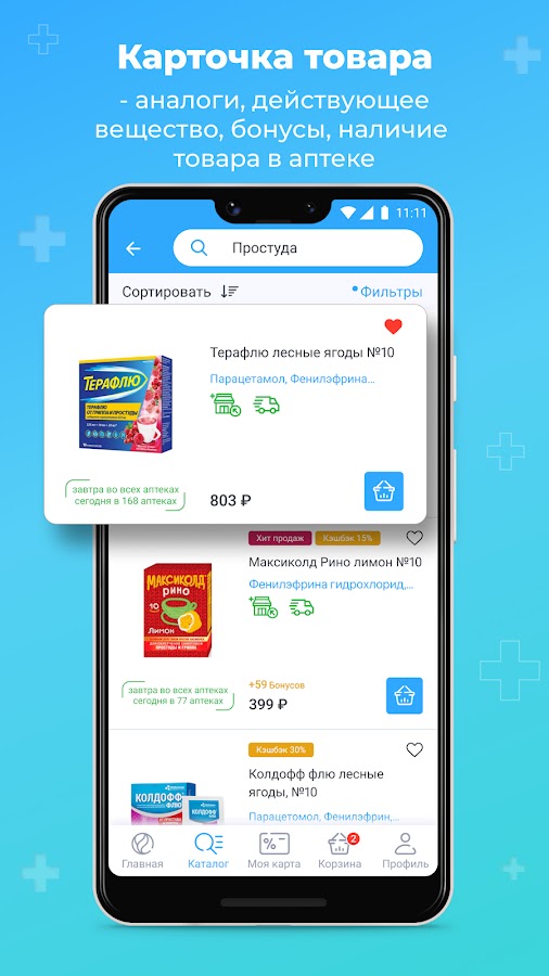 - Уведомления о наличии лекарств