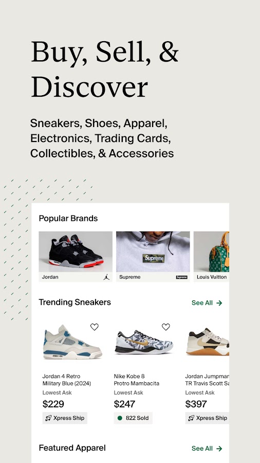 Каждый товар проходит проверку специалистами. Приложение популярно среди коллекционеров и людей, которые хотят купить Yeezy, Jordan, Supreme и другие культовые вещи без страха нарваться на подделку.
