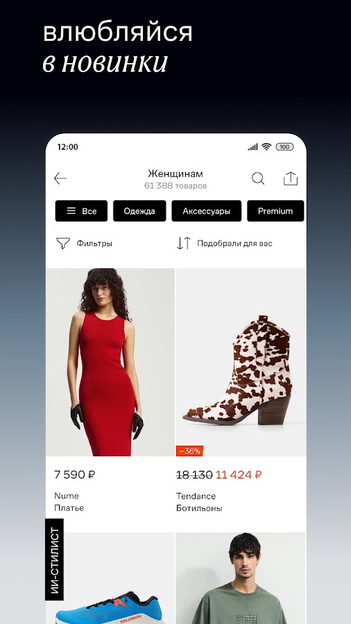 Приложение стильное, удобное, с продуманной навигацией. Здесь легко собирать строгие офисные капсулы и женственные вечерние образы.