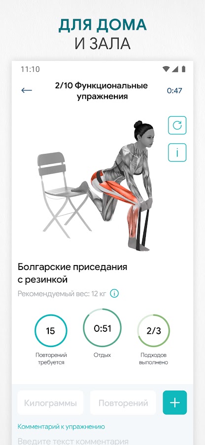 ΠΠ΅ΡΠΏΠ»Π°ΡΠ½ΠΎΠ΅ ΠΏΡΠΈΠ»ΠΎΠΆΠ΅Π½ΠΈΠ΅ Ρ ΡΡΠ΅Π½ΠΈΡΠΎΠ²ΠΊΠ°ΠΌΠΈ ΠΊΠ°ΠΊ Π΄Π»Ρ Π·Π°Π»Π°, ΡΠ°ΠΊ ΠΈ Π΄Π»Ρ Π΄ΠΎΠΌΠ°. ΠΠ³ΡΠΎΠΌΠ½ΡΠΉ Π²ΡΠ±ΠΎΡ ΡΠΏΡΠ°ΠΆΠ½Π΅Π½ΠΈΠΉ Ρ Π²ΠΈΠ΄Π΅ΠΎΠΈΠ½ΡΡΡΡΠΊΡΠΈΡΠΌΠΈ ΠΈ Π³ΠΎΡΠΎΠ²ΡΠΌΠΈ ΠΏΠ»Π°Π½Π°ΠΌΠΈ.