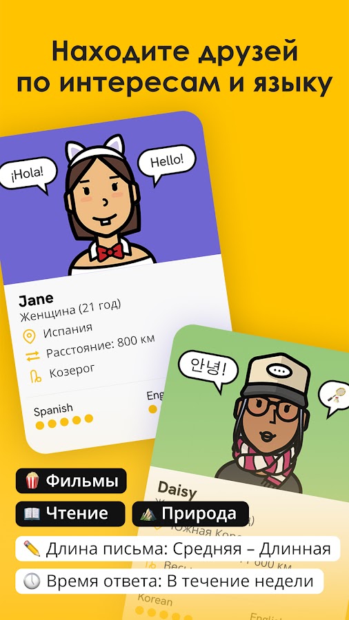 Для вдумчивой переписки идеально подходят Interpals и Slowly. Они создают атмосферу ожидания и позволяют глубже погружаться в общение, а Slowly особенно интересен тем, что письма доставляются через часы или дни.