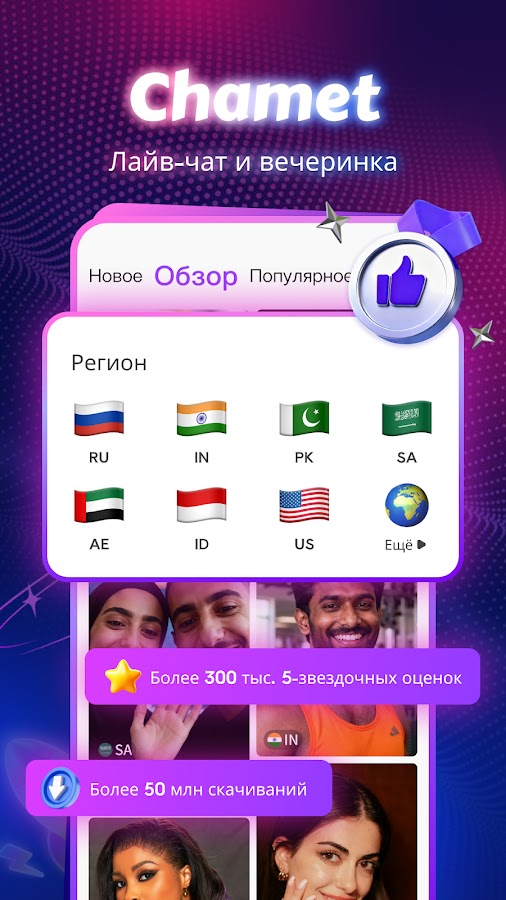 | Chamet | Видеочаты | Быстрый подбор собеседников по интересам |