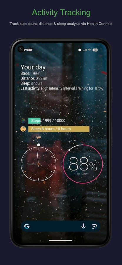 KWGT — мощный инструмент для создания кастомных виджетов. Здесь можно собрать уникальные часы, погодные панели, показатели батареи, расписания и многое другое. Настройка занимает немного времени, но результат позволяет сделать экран абсолютно индивидуальным. Отлично работает в связке с Nova Launcher или другими лаунчерами.