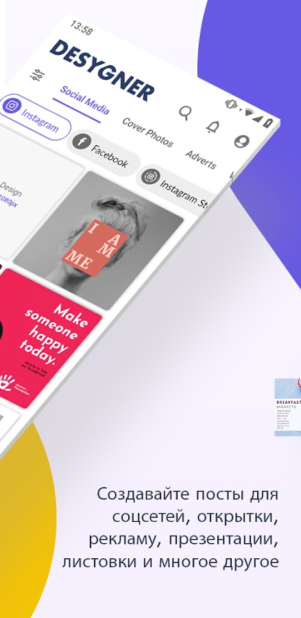 Desygner — один из самых удобных сервисов для тех, кто создаёт контент для соцсетей и бизнеса. Здесь можно делать логотипы, баннеры, афиши и визитки.
