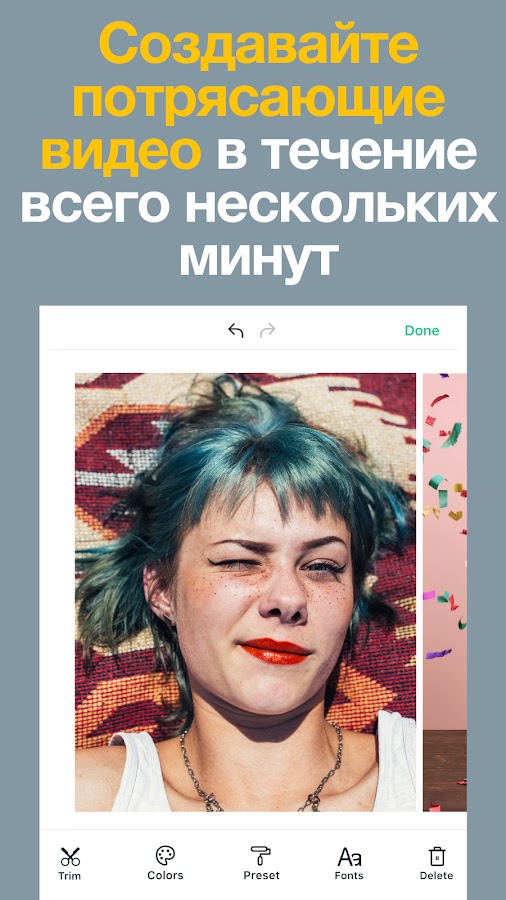 InShot давно завоевал популярность как мощный инструмент для мобильного монтажа. С его помощью можно создавать видео из фотографий в несколько кликов: просто добавьте снимки, выберите музыку, наложите фильтры и переходы. Особенность InShot — удобная линейка инструментов для обрезки, ускорения и замедления кадров, добавления текста и стикеров. Любители Instagram и TikTok оценят прямой экспорт в социальные сети без потери качества.