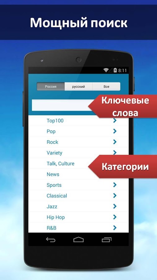 - Для доступа к тысячам радиостанций и подкастов — TuneIn Radio, iHeart, radio.net.