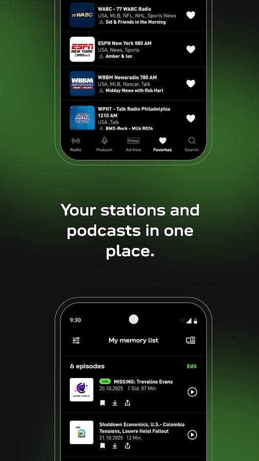 myTuner Radio позволяет слушать более 50 000 радиостанций и 1 000 000 подкастов. Приложение объединяет эфиры из разных стран и предлагает удобный поиск по жанрам, городам и странам.